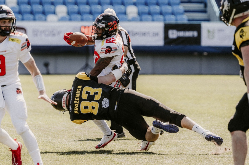 Napriek štatistikám, ktoré defenzívu nestavaju na čelo ligy, defenzívny koordinátor Juraj Sanitra hovorí o výraznom posune od prvého zápasu. „Keď je potrebné zatiahnuť ručnú brzdu, vieme vytvárať turnovery a zastavovať súpera v red zone. Ak porovnám prvý zápas s posledným z hľadiska kvality a disciplíny, spravili sme veľký krok vpred.”